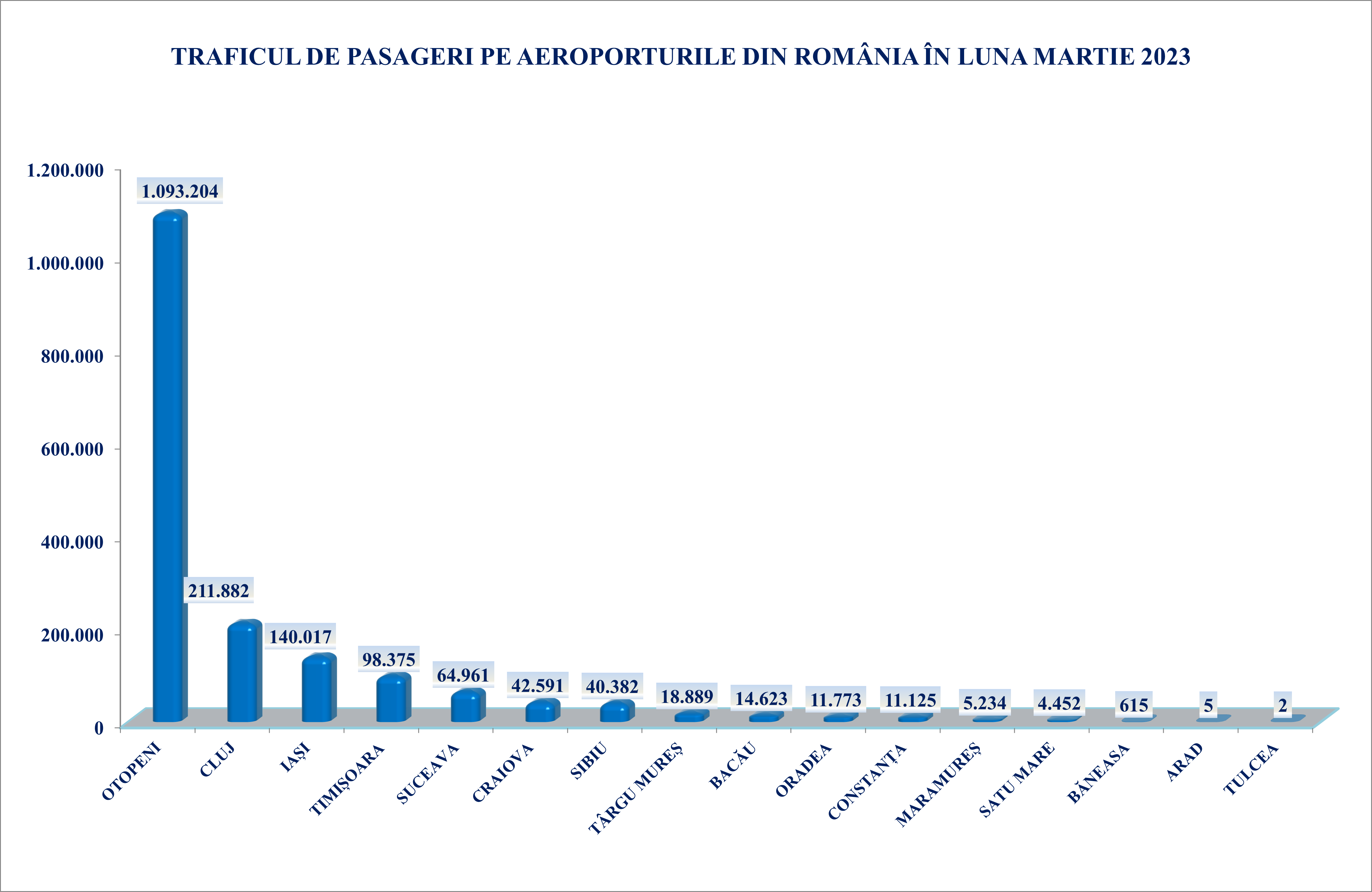 📰 PE SCURT: Aeroporturile din România au înregistrat în martie 2023 nu mai puțin de 1.758.130 de pasageri, cu 7% mai mulți decât în martie 2019.