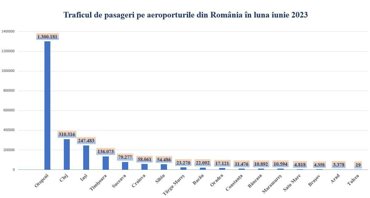 📰 PE SCURT: Numărul pasagerilor care au tranzitat aeroporturile românești în luna iunie a acestui an a fost de 2.293.895 - cu 8,46% mai mulți decât în iunie 2022 și cu 5,24% mai mulți față de iunie 2019.