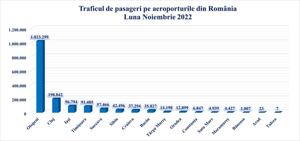 ✈️ Aeroporturile din România au înregistrat un total de 1.627.670 de pasageri în luna noiembrie a acestui an. Numărul pasagerilor înregistrați în noiembrie 2022 este cu 6,28% mai mic decât în aceeași lună a anului 2019 (1.736.765 pasageri).
